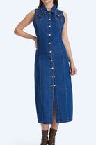 Meet the "JULIA CARDIGAN DRESS" – a modern sheath silhouette crafted in a classic shirt-dress style. Made from a sustainable blend of 85% cotton and 15% hemp, this medium blue denim dress combines structure, softness, and eco-friendly flair. Perfect for dressing up or down, it’s your new go-to for effortless style.