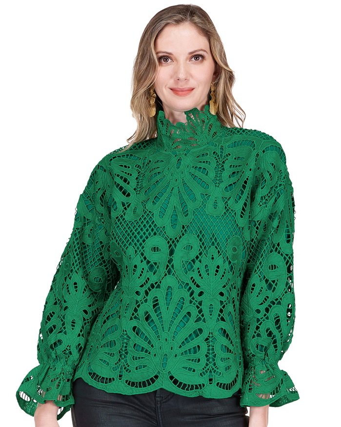 Add a splash of fun to your outfit with this playful Mock Neck Pull Over Top in vibrant green lace. Its cheeky mock neck and delicate lace details bring a flirty twist to your look, perfect for turning heads whether you're out with friends or enjoying a casual day. Light, comfy, and full of personality this top is your new go-to for effortless style with a wink.
