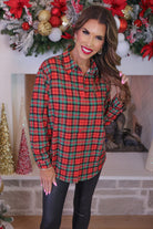 Embrace the holiday season with this classic plaid tunic. Featuring a vibrant Christmas plaid design, it’s perfect for adding festive charm to any outfit. With its button-up style, long sleeves, and sharp collar, this tunic offers a polished look that works for both casual and dressy occasions. Wear it on its own or layer it for added flair, making it an essential piece for your holiday wardrobe.