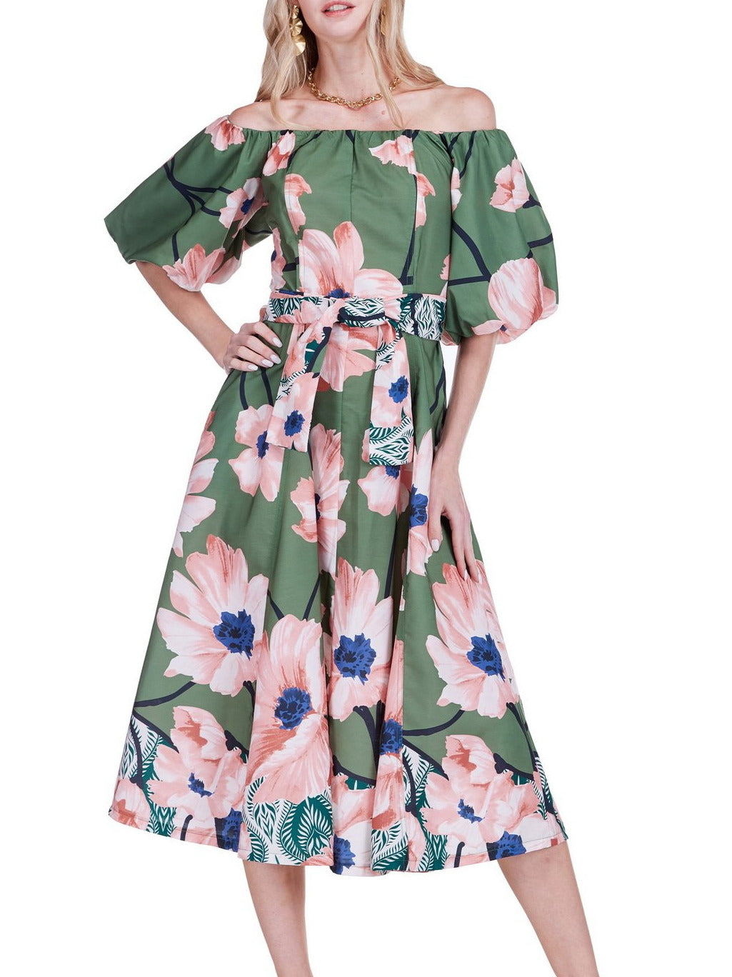 Step into sunshine with the Off-Shoulder Flared Midi in Olive Bloom! This playful dress features a flirty off-shoulder neckline and a breezy flared skirt that dances with every step. Perfect for garden parties or weekend adventures, its fresh olive hue adds a touch of nature-inspired charm to your wardrobe. Embrace effortless style and twirl into fun wherever you go!