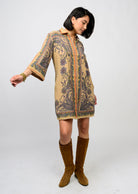 A timeless blend of elegance and ease, this paisley border shirt dress features a rich, intricate print with vibrant accents along the placket, sleeves, and hem. Crafted from a breezy woven fabric, it’s designed with a relaxed silhouette, three-quarter sleeves, and a classic shirt collar for a refined yet laid-back look. Pair it with boots for a chic daytime outfit or dress it up with statement accessories for effortless versatility.