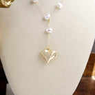 Pearl Lariat Necklace with Puffy Heart Pendant – Gold Tone