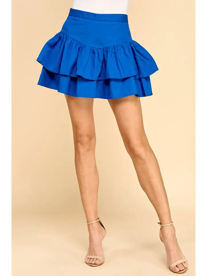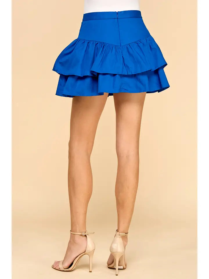 This tiered poplin skirt adds a playful touch with its layered ruffles and flared silhouette. Crafted from crisp fabric for a structured yet lightweight feel, it features a concealed back zipper for a smooth, seamless finish, making it perfect for both casual outings and dressier occasions.