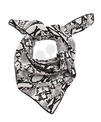 Add a modern edge to your outfit with this chic square scarf featuring a striking phyton print. Its soft, lightweight fabric drapes effortlessly, offering endless styling options—from a neck wrap to a headscarf or bag accessory. The bold pattern makes it a standout piece that elevates both casual and dressy looks. Perfect for adding a hint of sophistication and texture to any ensemble.
