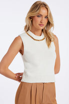 Elevate your casual look with the Savoy Chain Detail Sweater Tank. This playful piece combines cozy sweater texture with a chic chain accent, adding a touch of sparkle to your outfit. Perfect for layering or wearing solo, it brings effortless style and a hint of edge to your wardrobe.