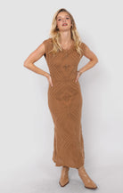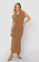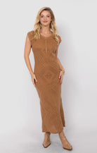 Step into effortless charm with the Wandering Intricate Knit Dress from Sadie & Sage. This playful midi dress, crafted from a cozy blend of 60% cotton and 40% acrylic, offers breathable comfort with a touch of stretch. Its sleeveless design makes it perfect for layering or wearing solo on sunny days. Made in China, this dress brings a whimsical knit pattern that’s sure to turn heads wherever your adventures take you.