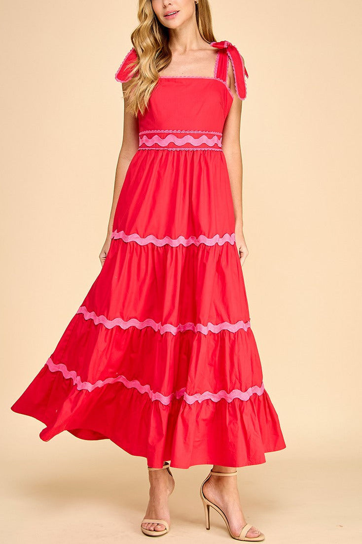 Ricrac Detail Back Hidden Zipper Tank Midi Dress