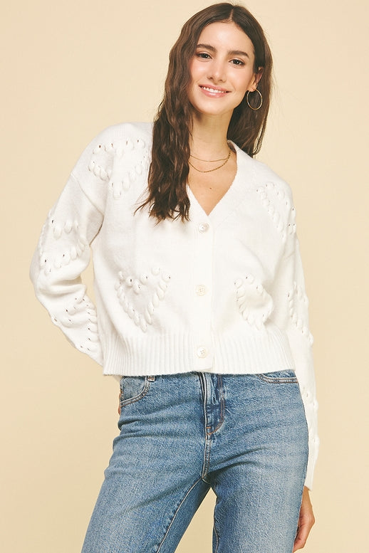 Heart Embroidered Knit Cardigan