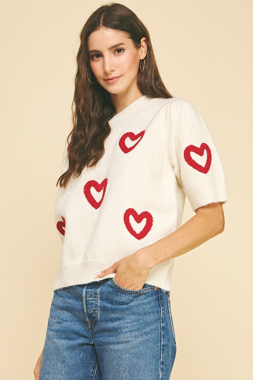 Heart Pattern Knit Sweater