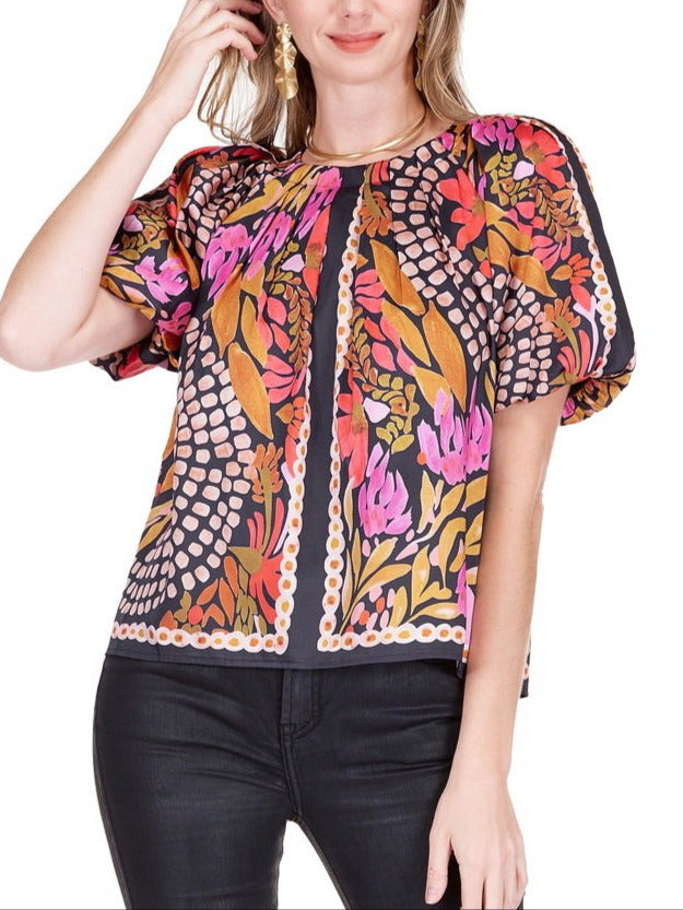 Pleated Puff Sleeve Top