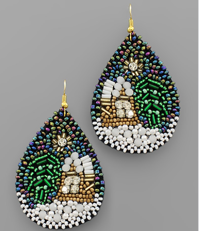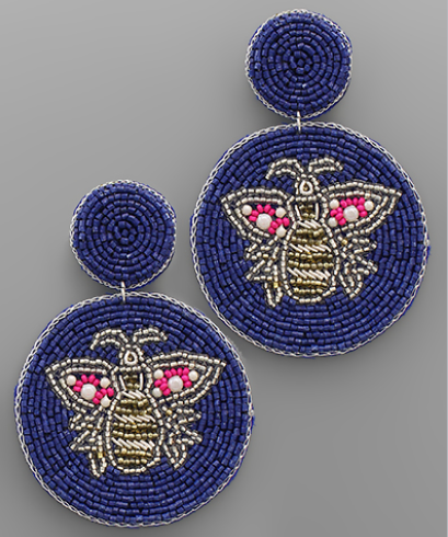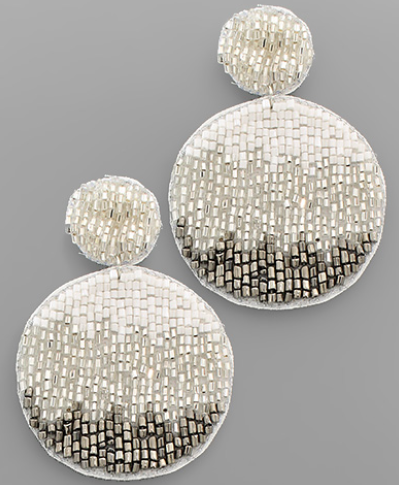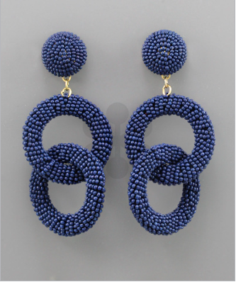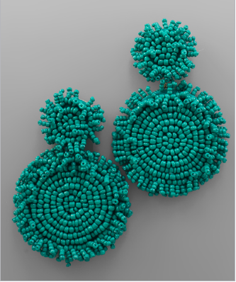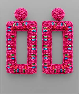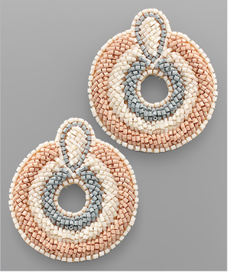 PINK/TQ Chevron Pattem Beaded Oval Earrings