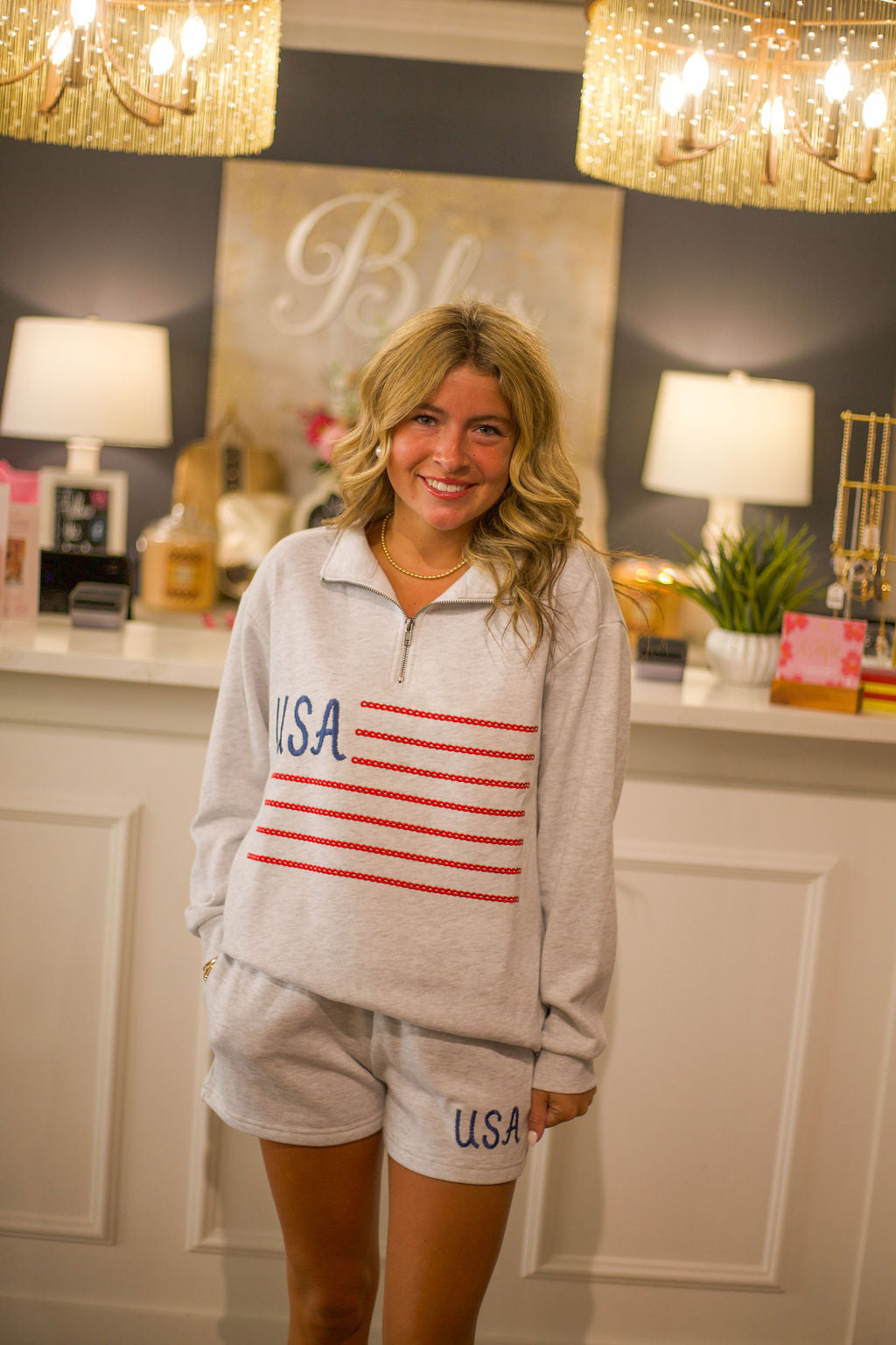 Americana Embroidered Quarter Zip Short Set