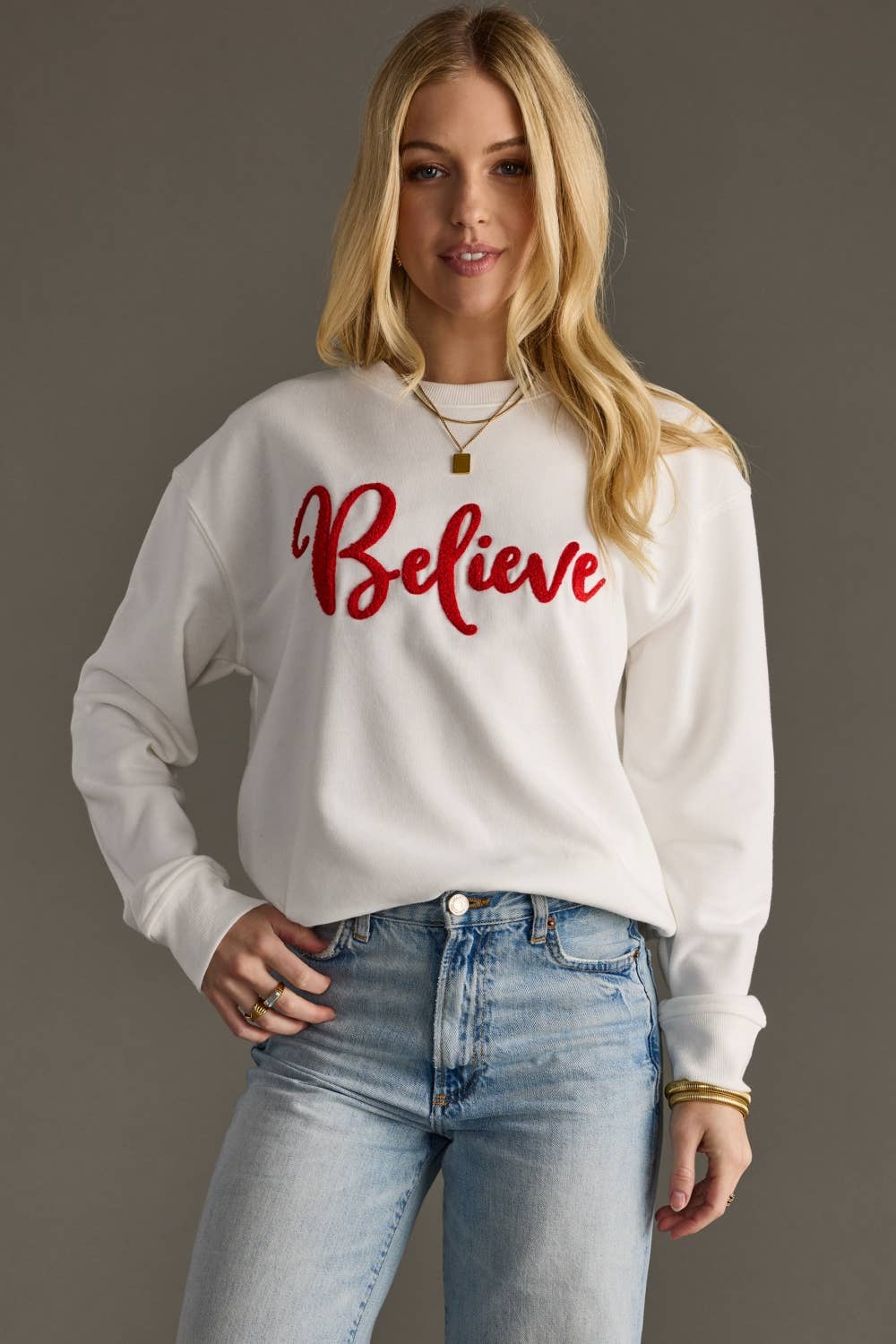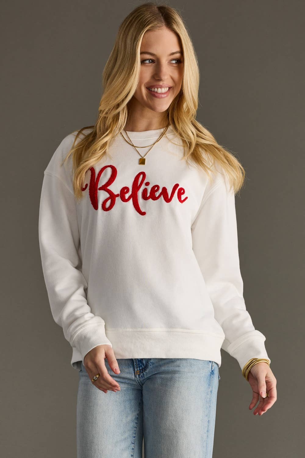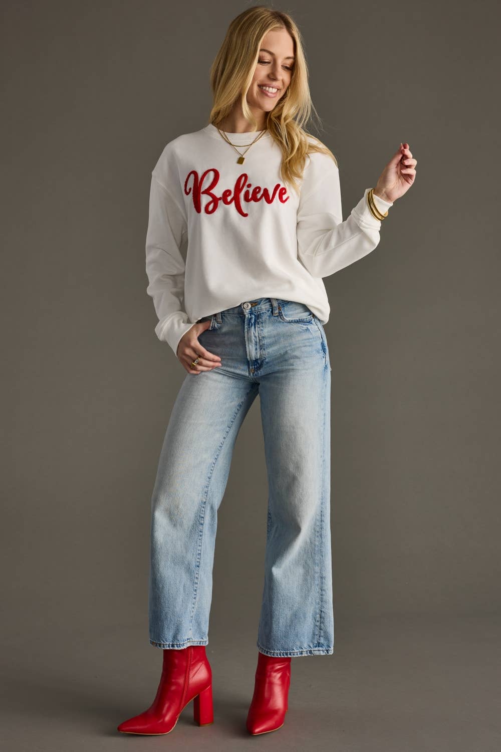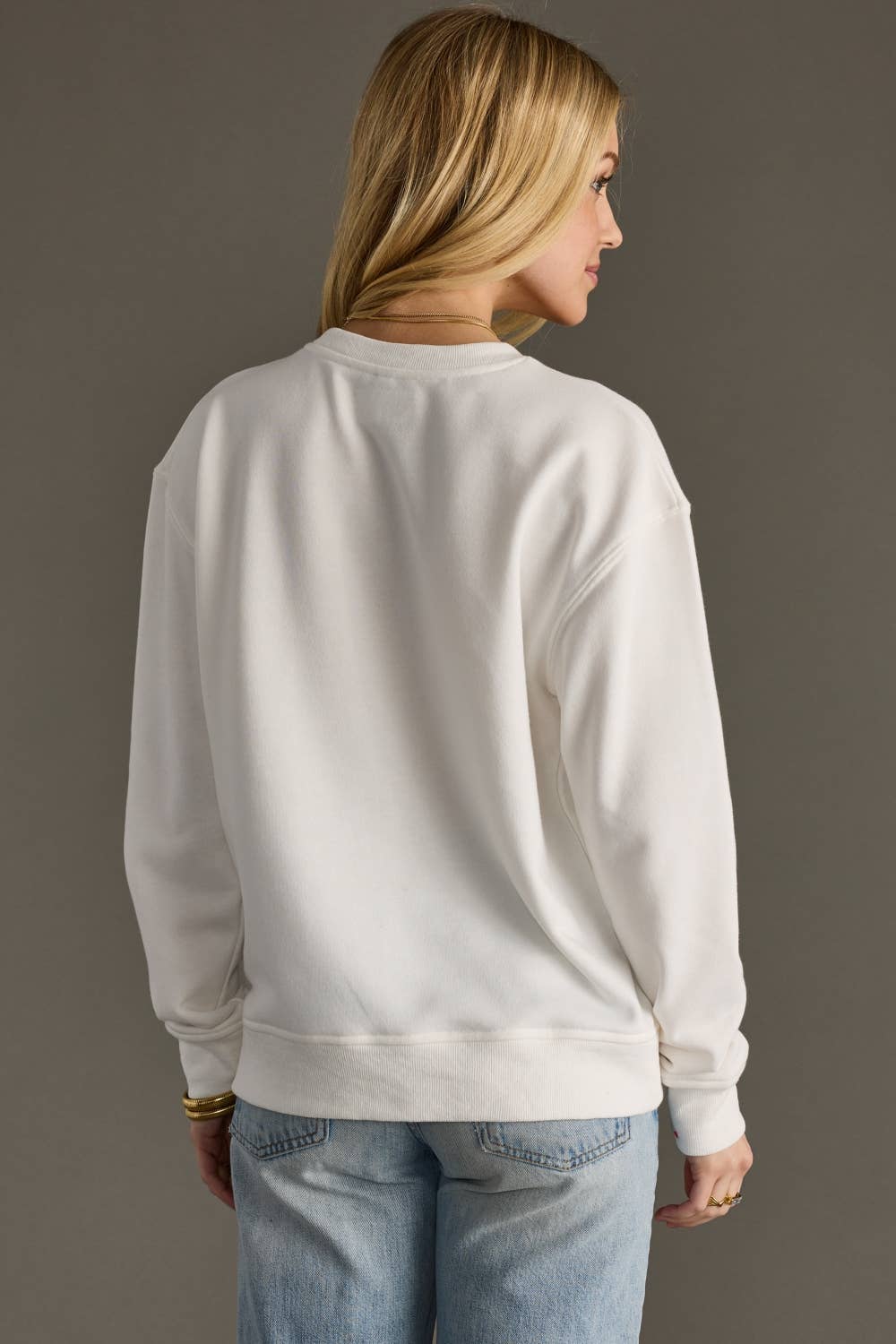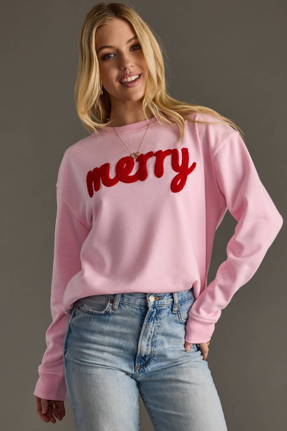 'MERRY' Embroidered Mock Neck Sweatshirt