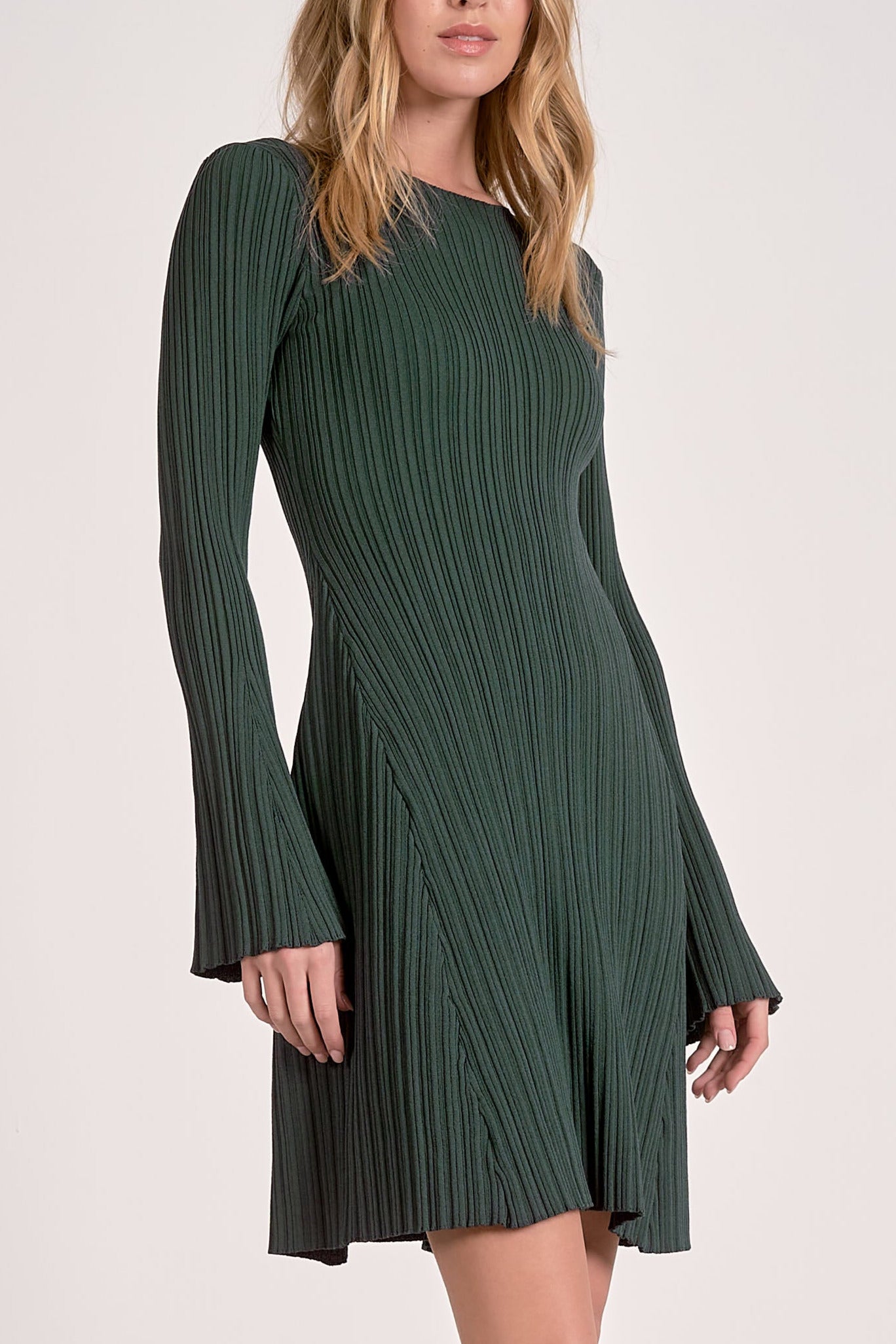 This long sleeve dress features a classic crew neckline and a softly flared silhouette that creates effortless movement. Designed with a ribbed texture, it adds depth and structure while maintaining a sleek, modern look. The fitted bodice transitions into a gentle flow at the hem, offering both comfort and sophistication. Perfect for day-to-night wear, it balances timeless style with contemporary ease.