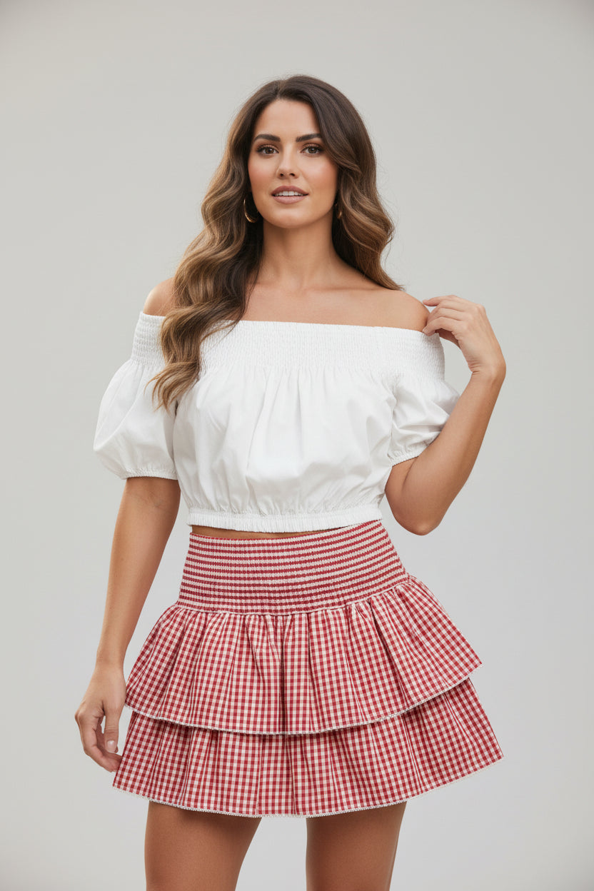 This off-the-shoulder blouse is the perfect combination of comfort and style for spring and summer. Featuring short puff sleeves and a relaxed fit, it's ideal for casual, everyday wear. Crafted from 100% cotton, the blouse is lightweight and breathable, keeping you cool on warmer days. Its versatile design pairs easily with skirts, jeans, or shorts, making it a must have addition to your seasonal wardrobe.