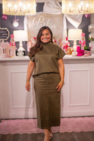 This sleek short sleeve top features a soft, suede-like finish that adds a touch of sophistication to any look. Designed with a high neckline and chic button details at the shoulder, it brings subtle elegance with modern appeal. The relaxed fit makes it comfortable for all-day wear, while the versatile style pairs effortlessly with both casual and dressy bottoms. Perfect for transitioning from work to evening outings with ease.