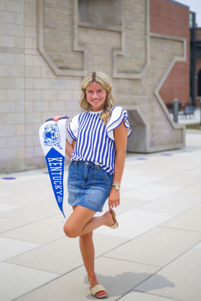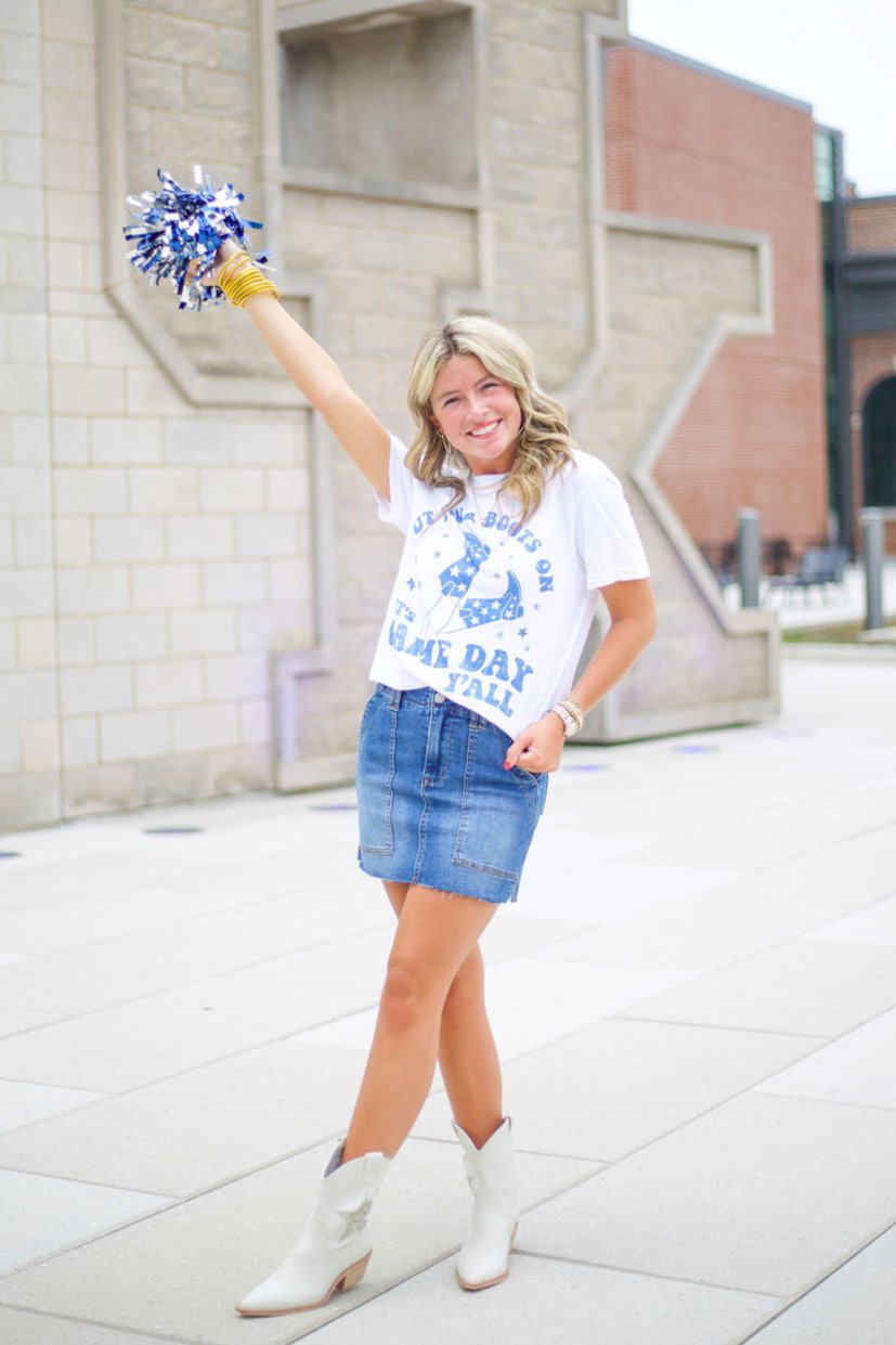 The Kelly Denim Mini Skirt is a versatile and stylish addition to any wardrobe. With its adorable design and functional pockets, this short denim skirt can be easily paired with a variety of outfits. Its light-colored denim adds a touch of sophistication to any look. Upgrade your fashion game with this must-have skirt.
