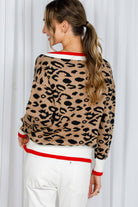 Leopard Pattern V-Neck Contrast Rib Knitted Sweater