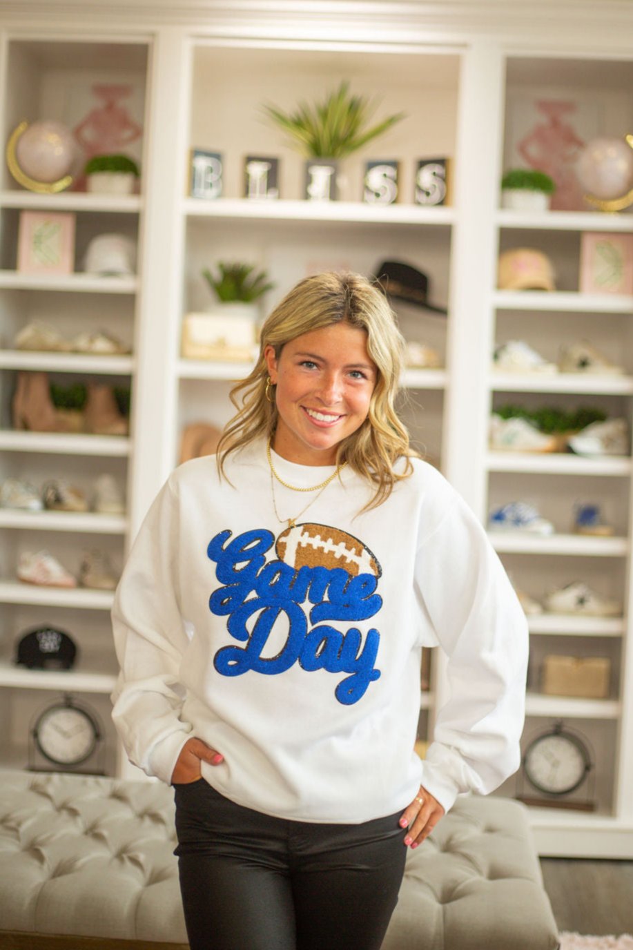 Sweatshirt w/ Royal Blue Game Day Football Chenille