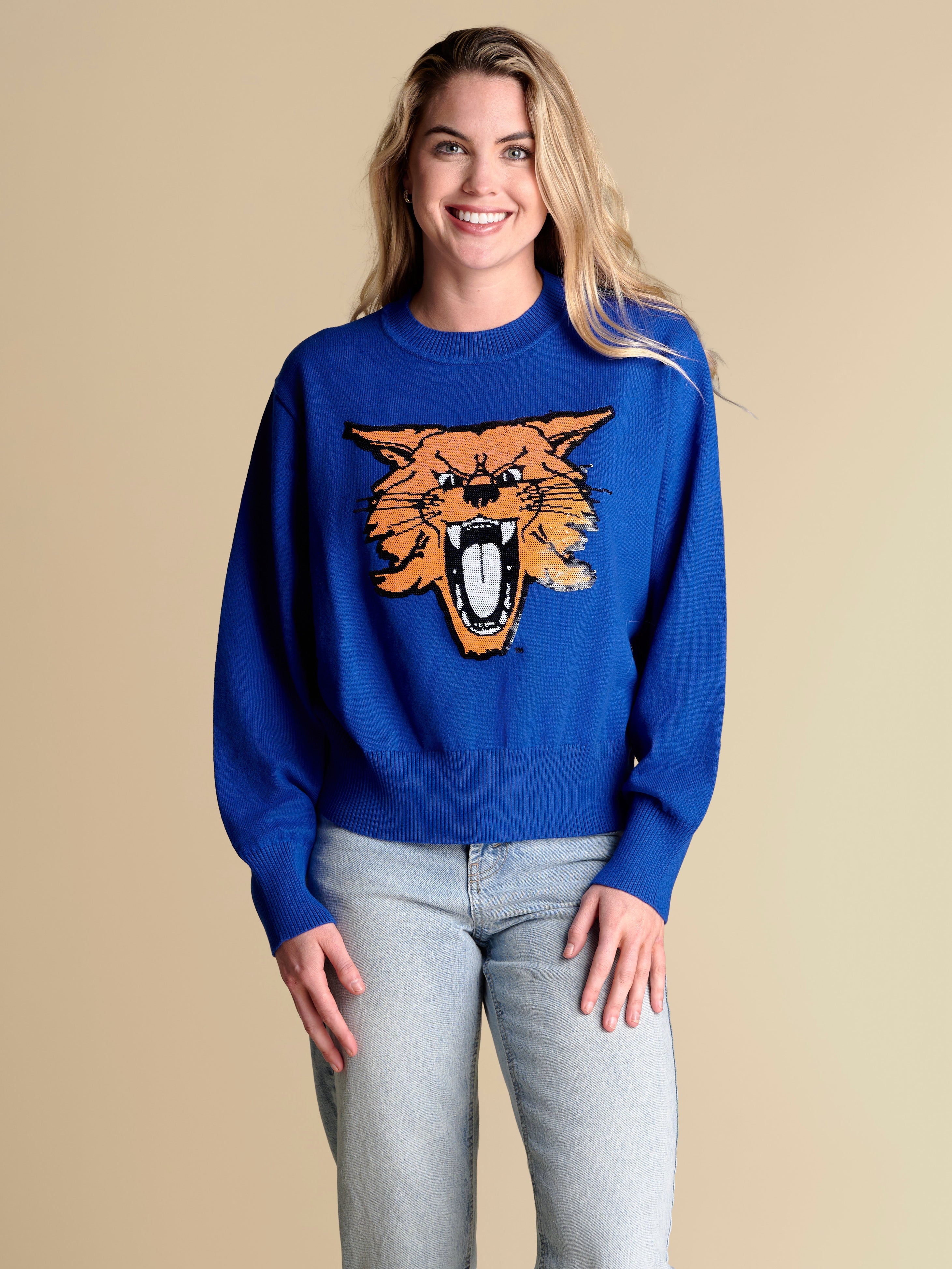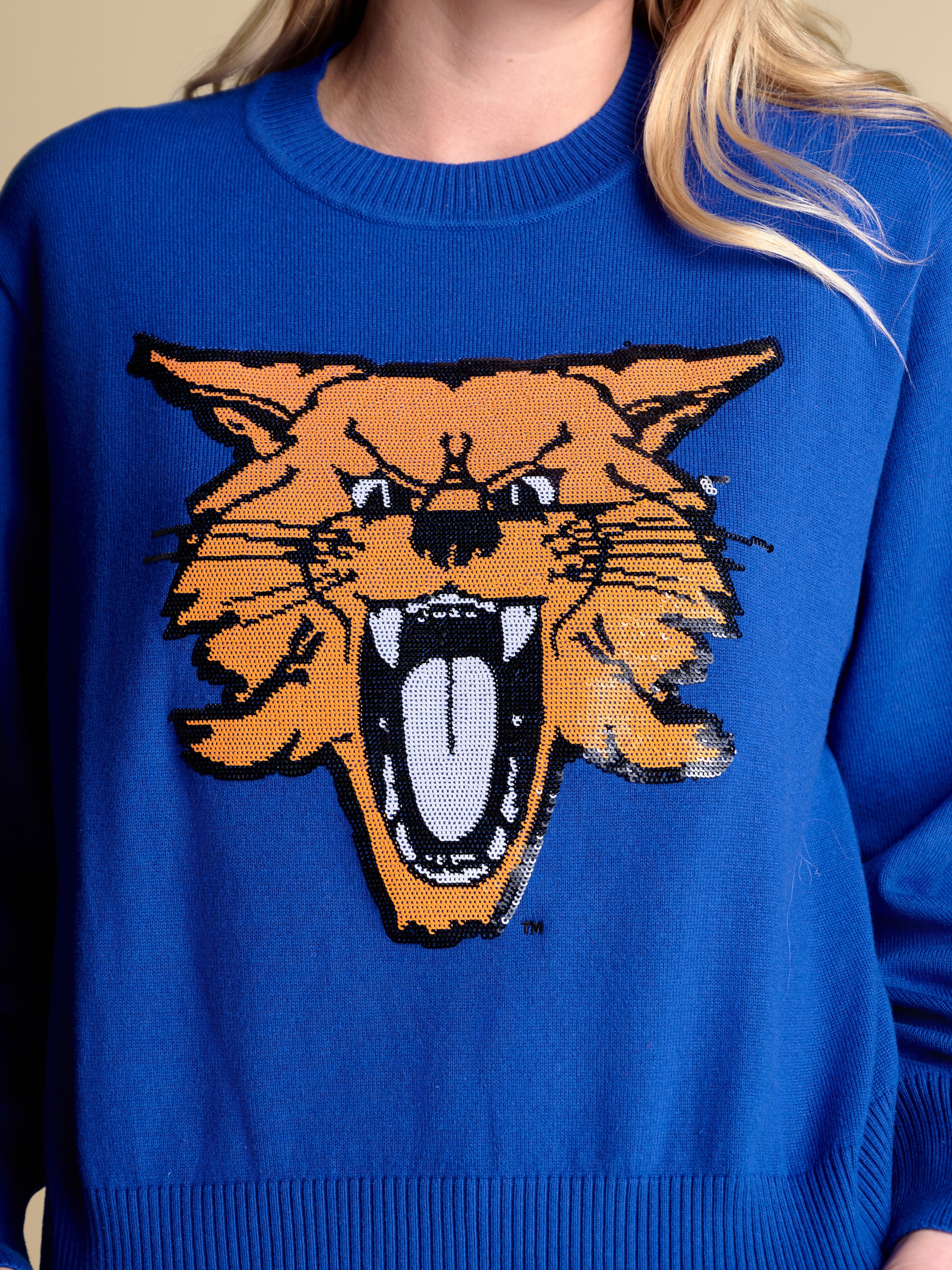 Embrace classic comfort and bold style with the Kentucky Classic Sequin Sweater, featuring a relaxed fit designed for effortless wear. This eye-catching piece is elevated by a vibrant, fully sequined logo that adds a touch of playful sparkle, complemented by a cozy chunky rib detailing at the neckline, cuffs, and hem, all crafted from a comfortable blend of 55% acrylic and 45% cotton for everyday luxury.