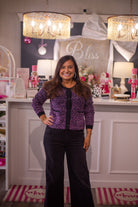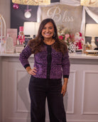 This cardigan is designed with a rich textured knit that creates a stylish tweed effect. Detailed with a button-down front and contrast trim, it balances classic sophistication with a modern touch. The fitted silhouette makes it flattering for layering over dresses, skirts, or tailored pants. A versatile piece that adds polished elegance to both casual and refined looks.