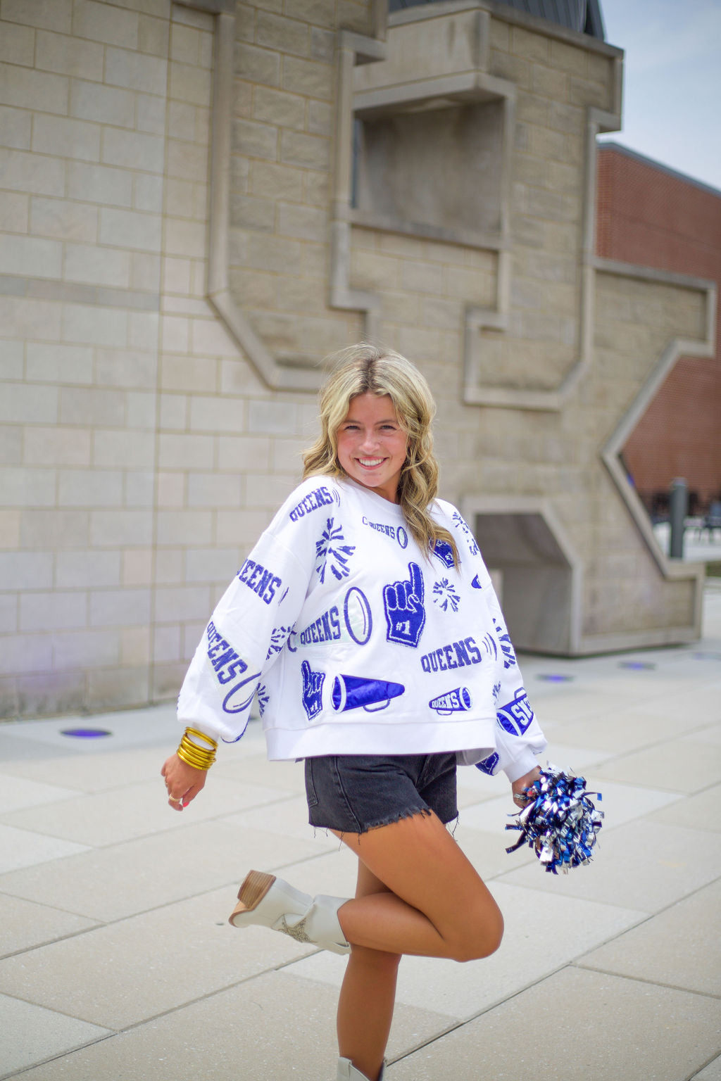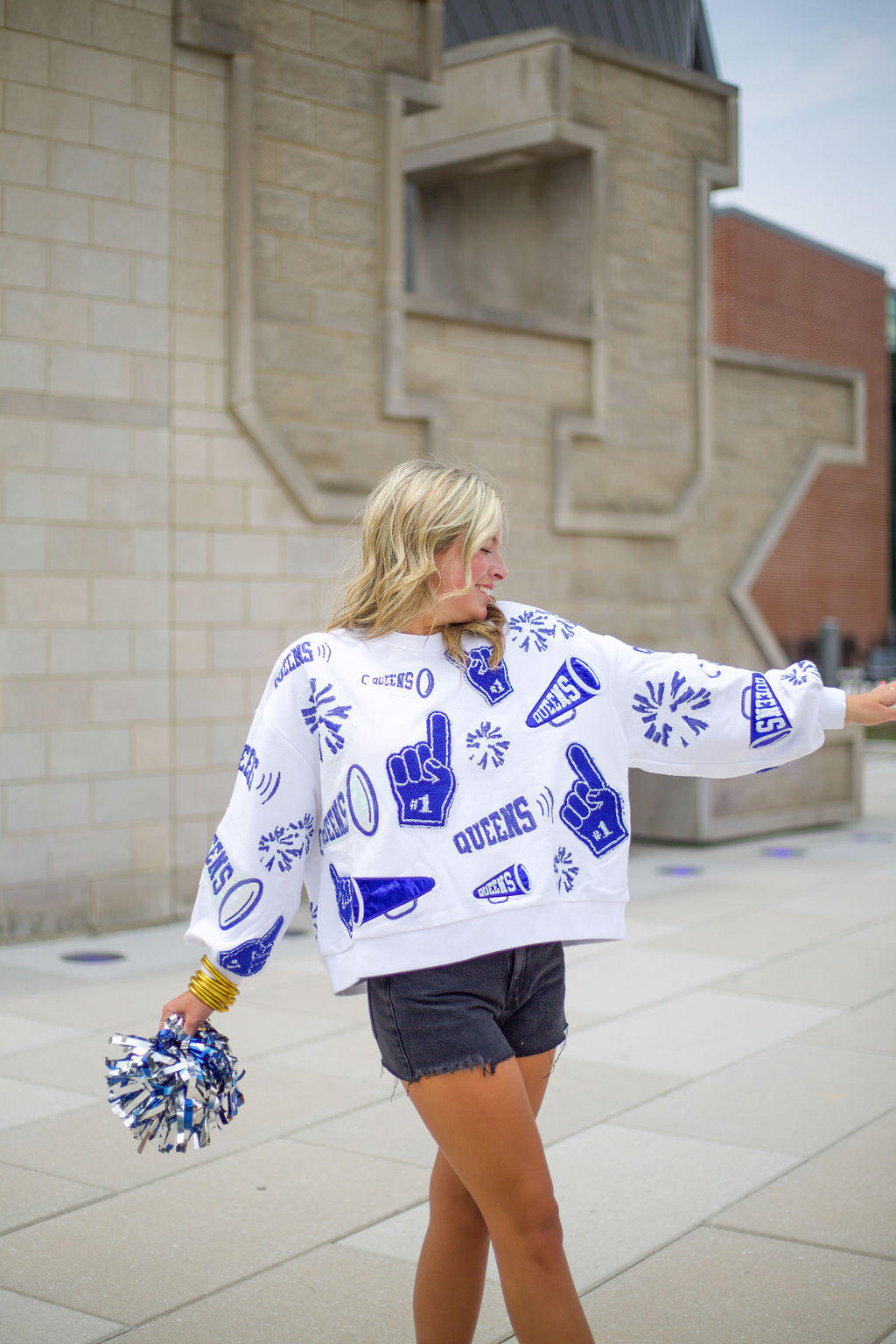 Queen of Sparkles Royal & White Cheers Queen Icon Sweatshirt
