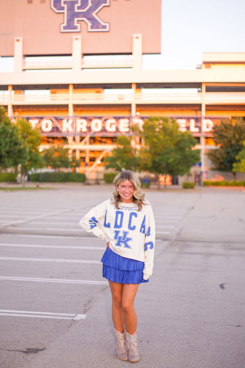 Show your enduring spirit in this classic crewneck, designed for ultimate comfort and undeniable style. This oversized, boxy fit pullover is crafted from soft 100% cotton fleece, ensuring a cozy feel. It features a striking large screen print across the chest and sleeves, making it a perfect statement piece for showcasing your allegiance with relaxed confidence.