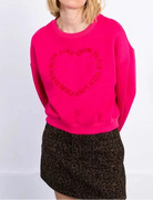 This cozy knit brings together comfort and style with its relaxed fit and playful design. Featuring a subtle graphic detail at the center, it adds a touch of charm while keeping the look effortlessly casual. Perfect for layering or wearing on its own, it’s a versatile piece that easily transitions from laid-back days to chic outings.