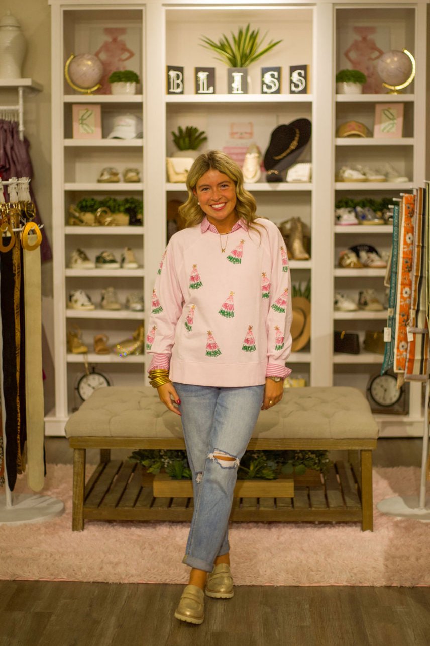Navy Grinch Mistle Toe Hand Sweatshirt