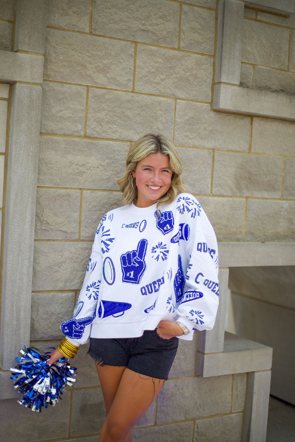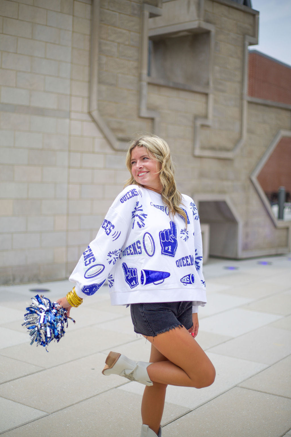 Queen of Sparkles Royal & White Cheers Queen Icon Sweatshirt