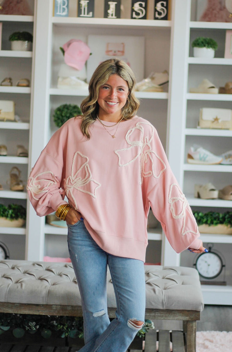 Queen of Sparkles Light Pink USA Bow Collar Sweatshirt