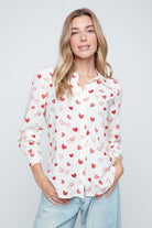 Button Blouse with Heart Print