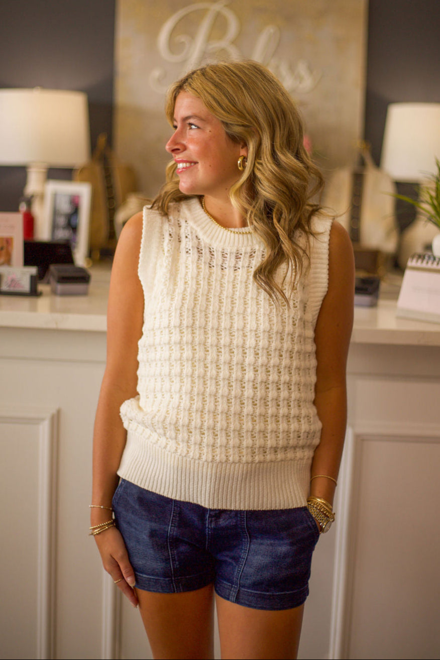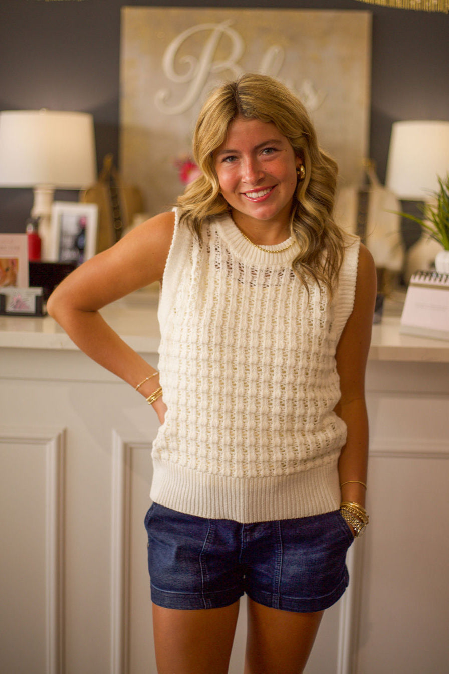 Solid Eyelet Sleeveless Sweater