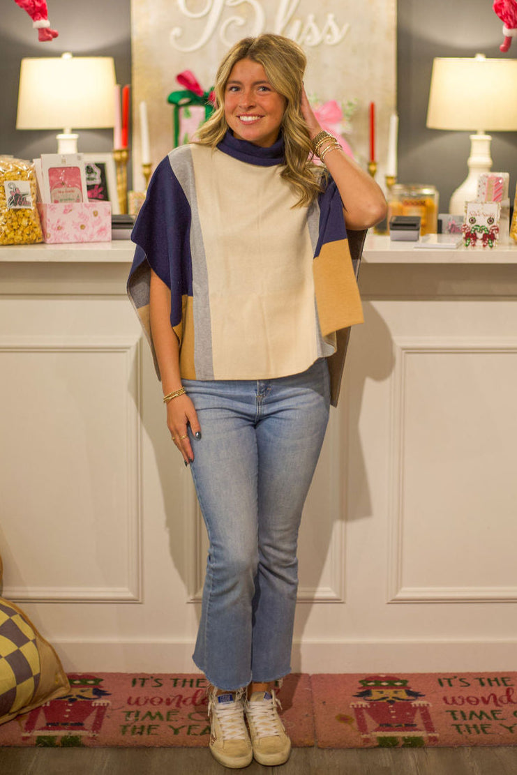 Colorblock Poncho 55%Viscose 28% Polyester 17% Nylon
