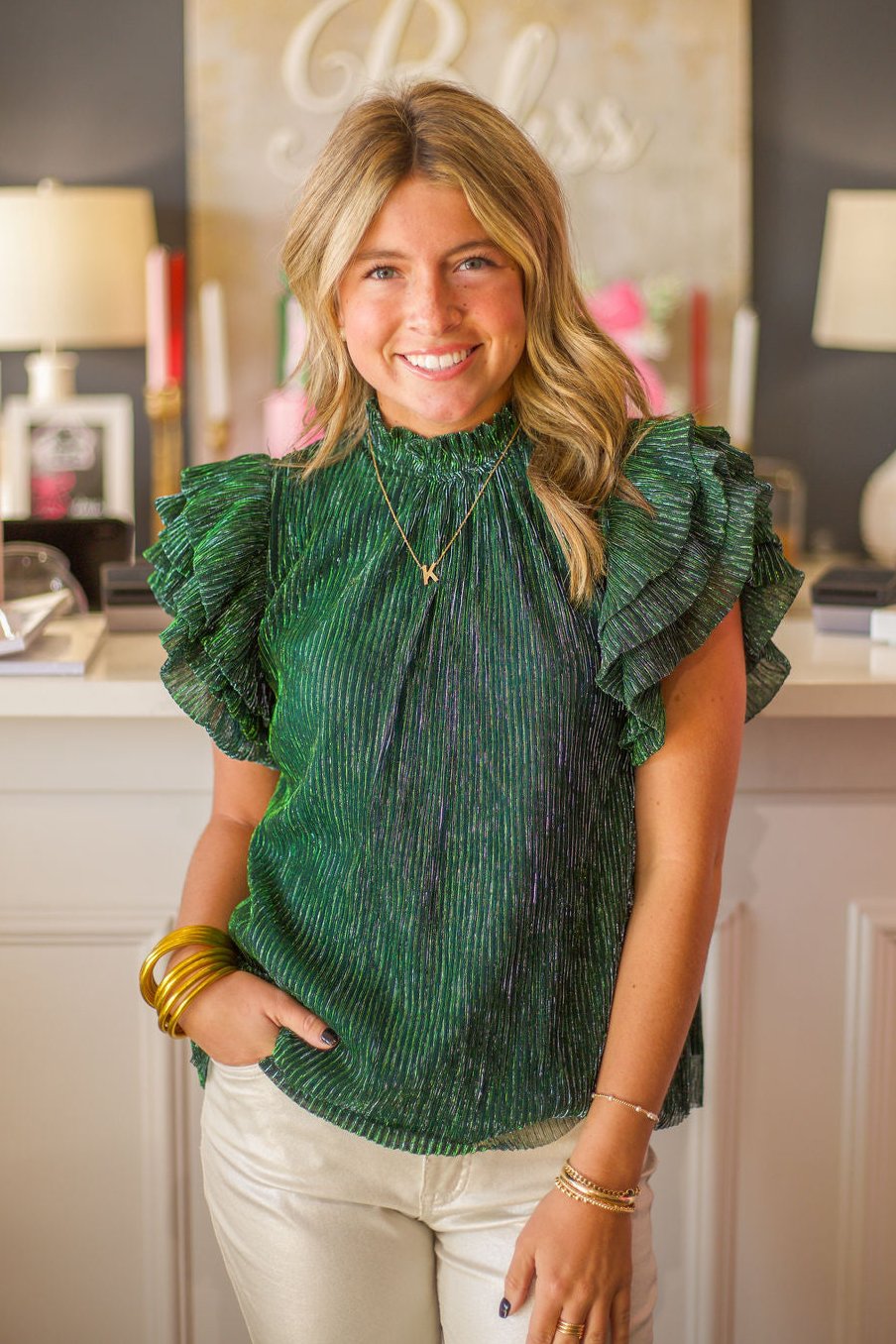 Flutter Sleeve Metallic Top
