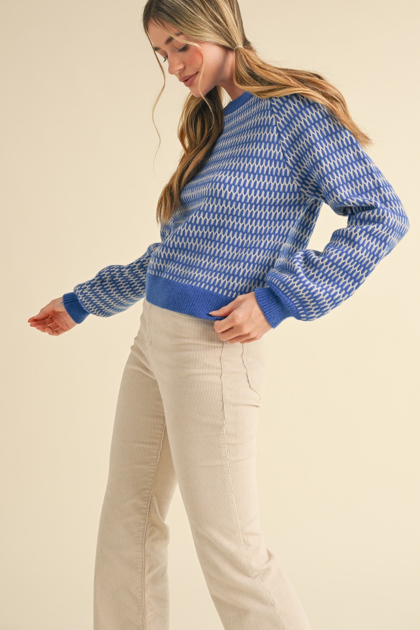 Mock Neck Puff Shoulder Sweater
