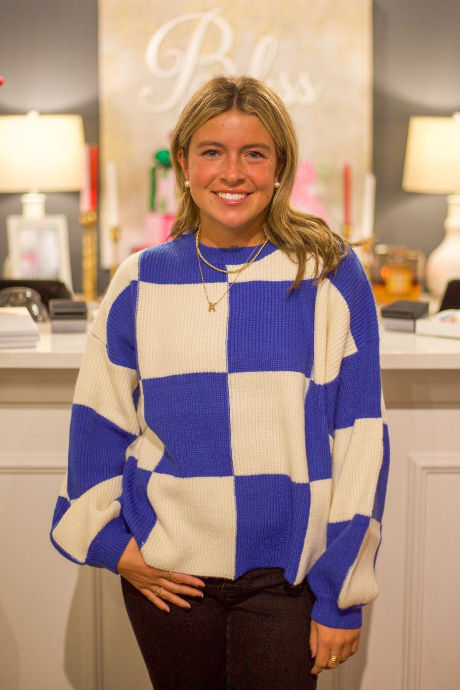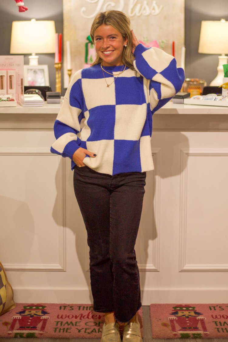Oversized Checkered Knit Sweater
