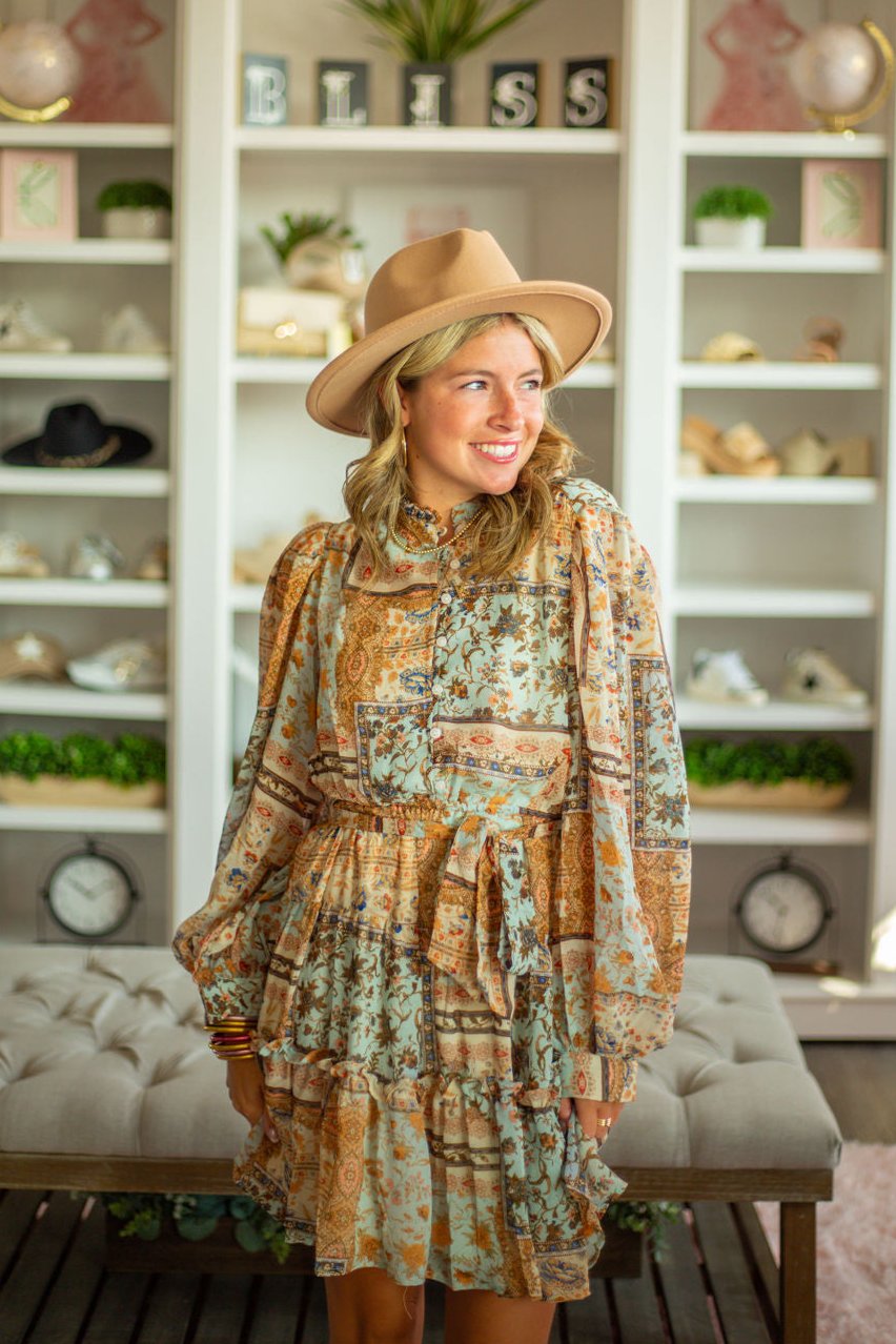 Long Sleeve Tie Waist Dress