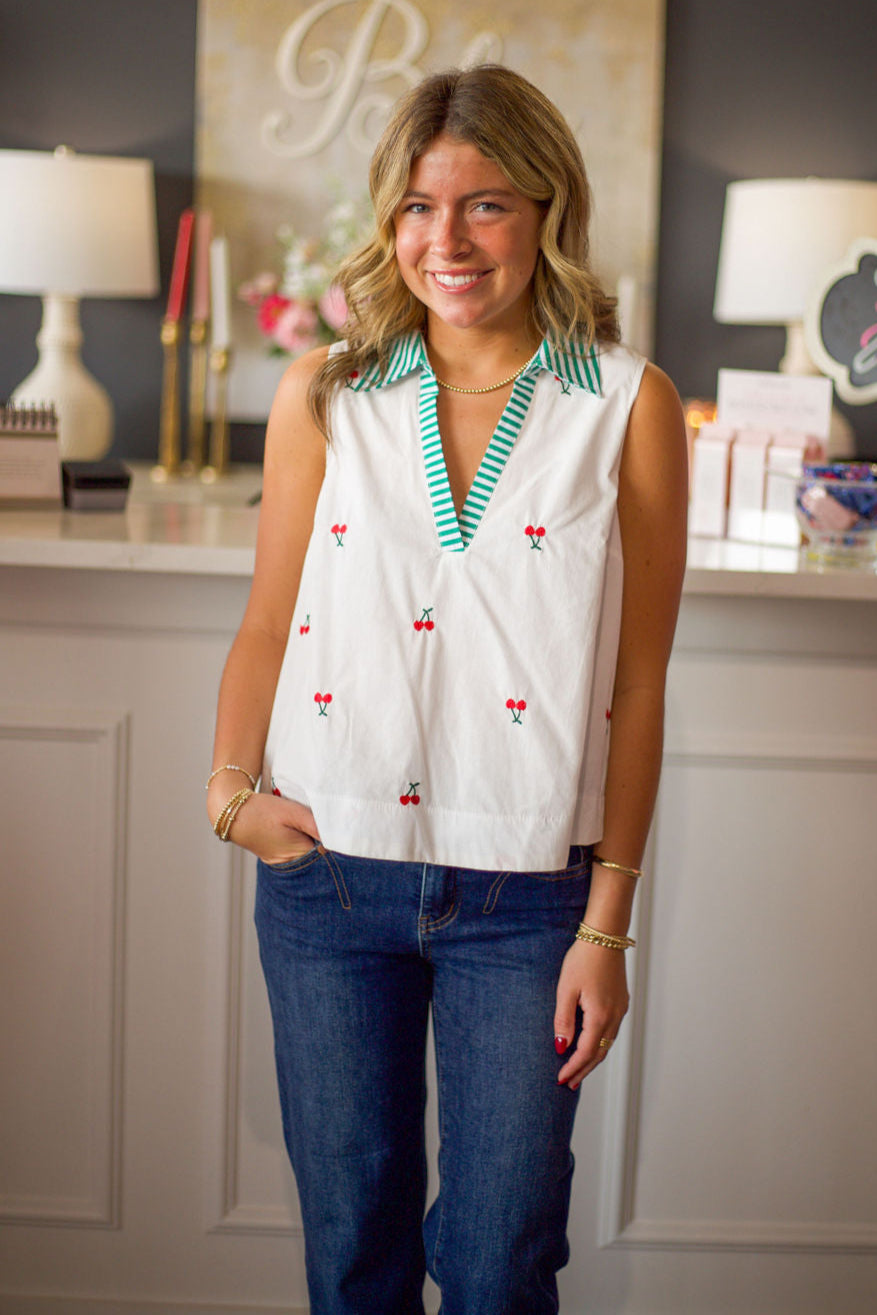 Fruit Pattern Shirt Collar Sleeveless Top