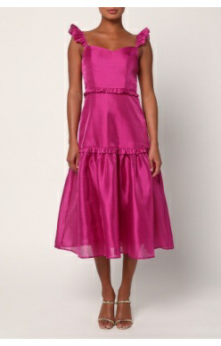 Effervescent Aesthetic Magenta Tiered Ruffled Midi Dress