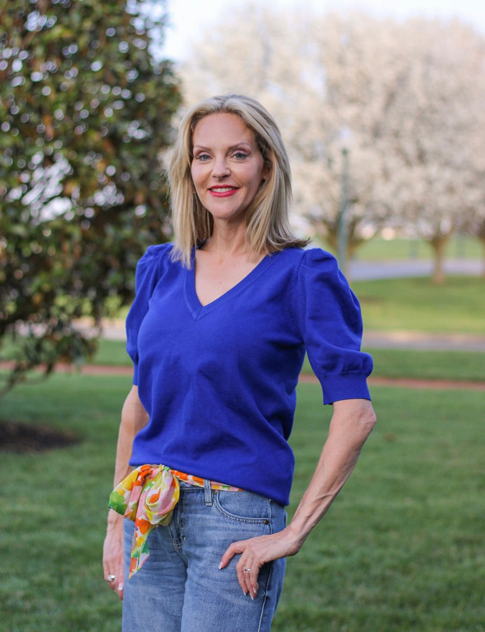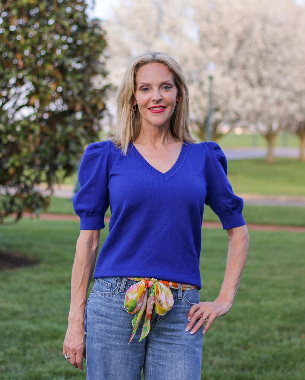 Short Sleeve V-Neck Puff Sleeve