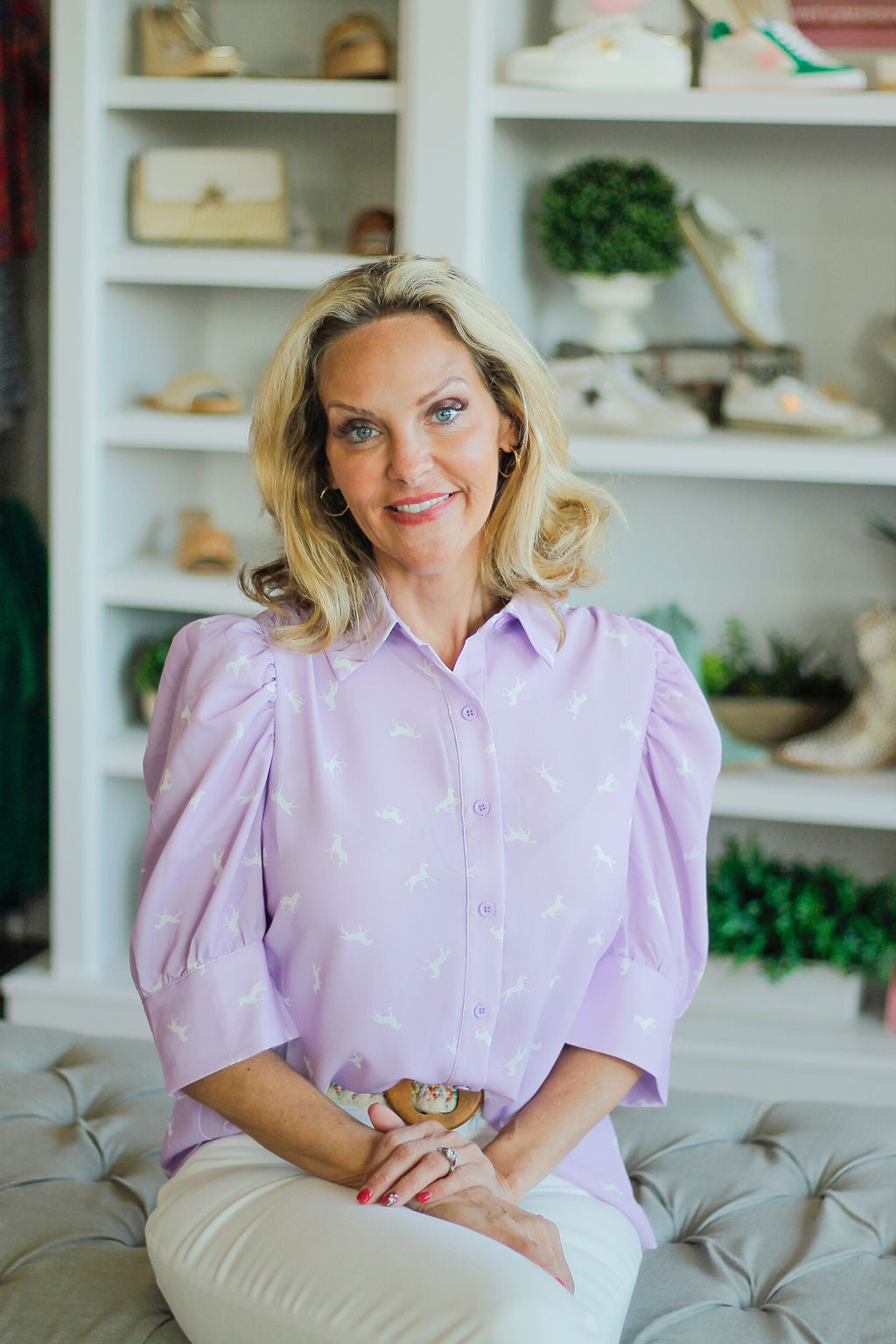 Puff Sleeve Horse Print Blouse in Lavender