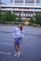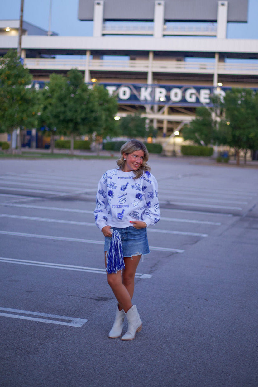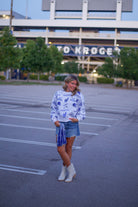 Elevate your casual wardrobe with The Sequin Football Sweatshirt by Stewart Simmons. This refined piece combines sporty charm with subtle sparkle, featuring delicate sequin accents that add a touch of elegance to a classic silhouette. Crafted for comfort and style, it effortlessly transitions from relaxed days to chic evenings, making it a versatile addition to your collection.