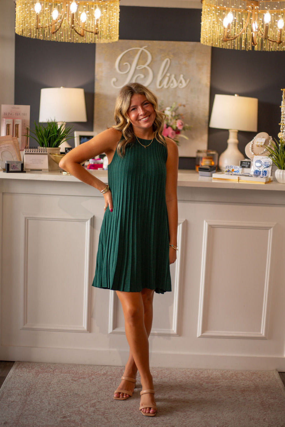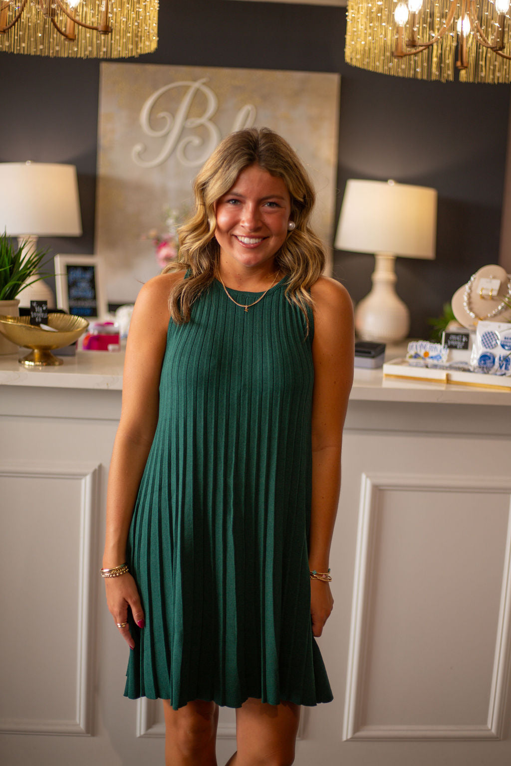 This sleeveless mini dress combines the cozy feel of a sweater knit with the elegance of a softly flared silhouette. Vertical ribbing creates a lengthening effect, while the lightweight stretch fabric ensures comfort and ease of movement. The simple, streamlined design makes it easy to dress up with heels or keep casual with flats, offering endless styling possibilities for any season.