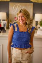 This adorable smocked top with delicate cotton lace detail is your go-to for sunny summer days. The stretchy smocking ensures a comfy fit that moves with you, making it perfect for backyard barbecues or picnics in the park. Light, breezy, and oh-so-cute, it’s ready to brighten up your warm-weather wardrobe!