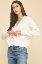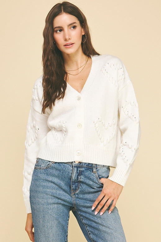 A sweet and cozy cardigan adorned with heart embroidery, perfect for adding a touch of charm to your wardrobe. The V-neck design and button-down front create a classic silhouette, while the long sleeves offer warmth and comfort. This piece is ideal for layering and adds a fun, romantic vibe, making it a great choice for Valentine’s Day or any occasion where you want to spread some love.