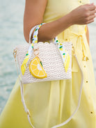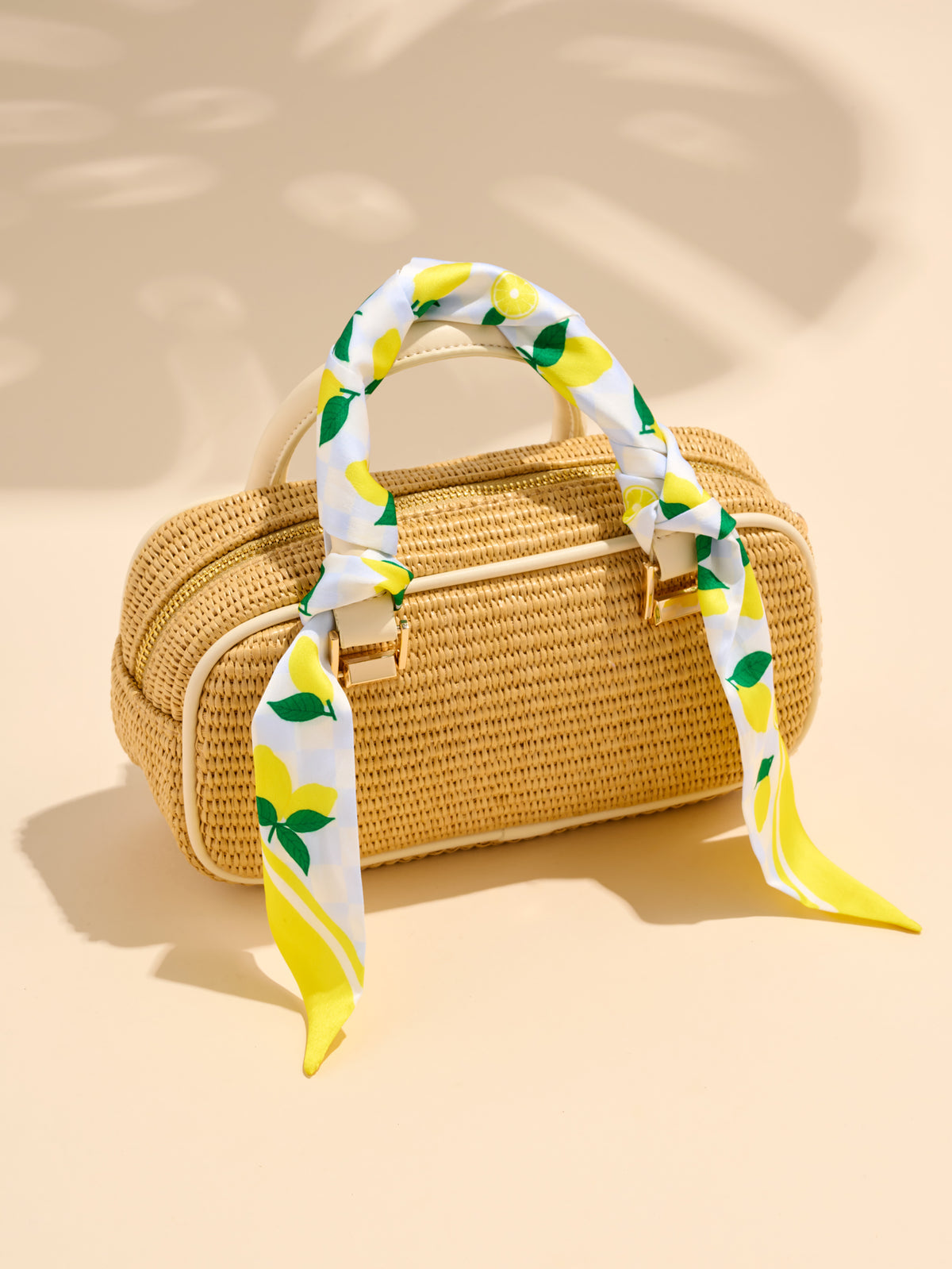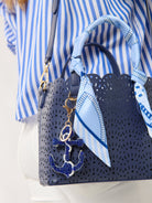 This set of two vibrant silk scarves features playful, coastal-inspired designs. One scarf showcases a nautical theme with ropes, anchors, and seashells in shades of blue, while the other features a refreshing lemon print with bright yellow accents on a checkered background. These scarves are perfect for adding a fun pop of color to your wardrobe, whether styled in your hair, around your neck, or tied to your handbag. The lightweight fabric ensures a comfortable fit and a touch of charm to any outfit.