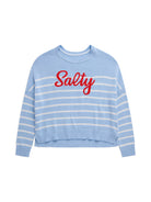 This cozy pullover brings a dose of cheeky charm to any casual outfit with its playful script lettering and classic horizontal stripes. The soft knit construction and drop-shoulder silhouette offer an easy, laid-back vibe that is perfect for breezy days by the water or relaxed weekend lounging. Designed with a stylish high-low hem and ribbed trim, this sweater provides a comfortable fashion fit that pairs effortlessly with your favorite denim. It is an instant conversation starter with a coastal twist, making it a must-have for anyone looking to embrace a nautical state of mind.