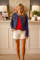 Step out in style with the Classic Jean Jacket W Fray Hem by Liverpool! This slightly cropped, collarless jacket adds a trendy touch to any outfit. Made with quality materials, it's perfect for a casual day out or a night on the town. Elevate your wardrobe with this must-have piece!