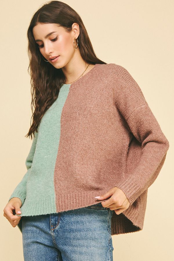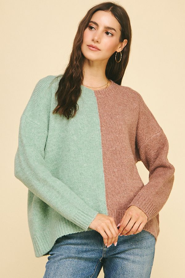 Brighten your day with this playful Colorblock Sweater featuring a fun asymmetric hemline and cozy round neck. The pullover style with ribbed edges offers easy comfort, while the soft blend of acrylic, polyester, and spandex keeps you snug and stylish all season long.